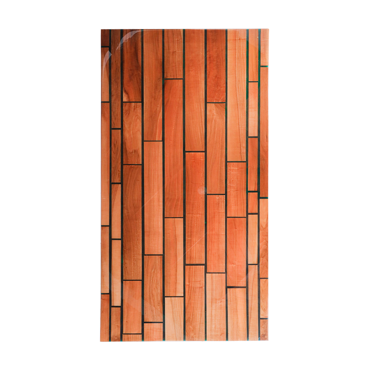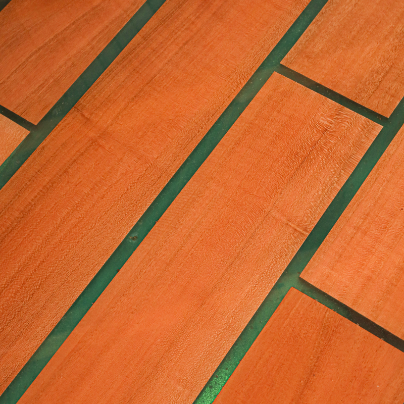 Comedor para 8 personas con encapsulado de resina y detalles en color verde.